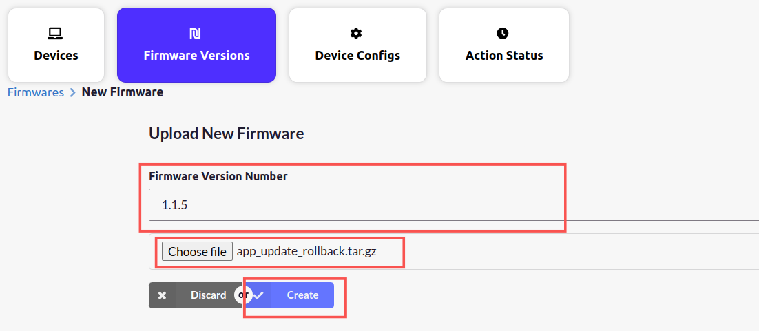Next, we need to upload the tar to bytebeam cloud. For that go to device management panel and click on the Firmware Versions tab.