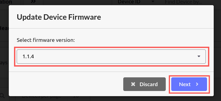 Now let’s proceed with our OTA update. For that, Go to the Device Management panel and select the device Next, Click on the update firmware