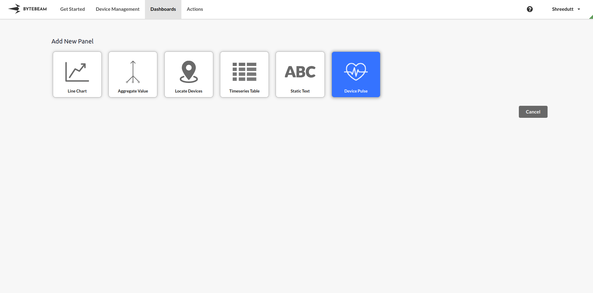 Choose Device Pulse Panel from the list of available panels.\