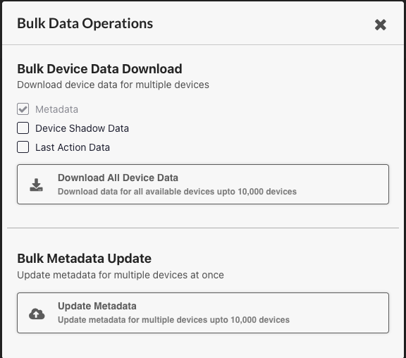 You can now bulk download Device Shadow and Last Action details along with Metadata for any specific device in Device Management. Filters can be applied to download data only for selected devices, giving you greater control and flexibility.