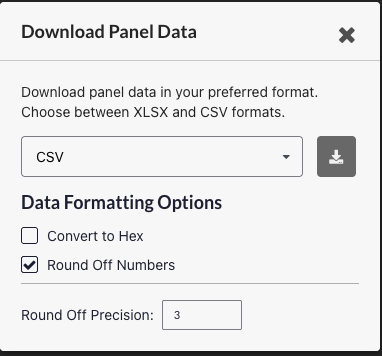 A new option has been added to download data in hexadecimal format, and users can now define round-off precision for float values.